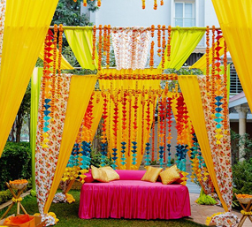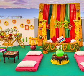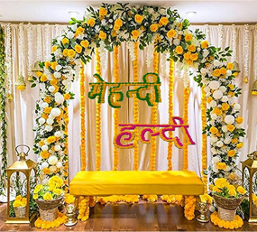 Normally, a Mehndi ceremony is an emotional Shringaar ceremony, aimed at ritualistically beautifying the bride and groom and preparing them for their wedding day. It begins with the arrival of Mehndi from the groom's side for the bride, a step that's mirrored with the Haldi ceremony or Pithi Dastoor.