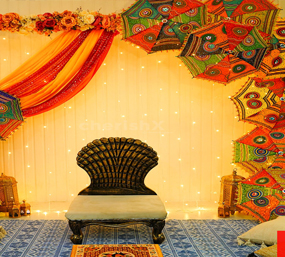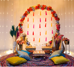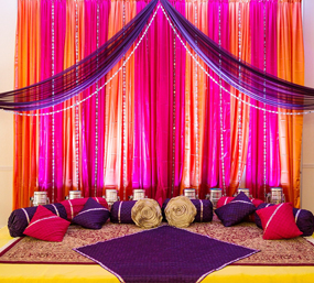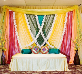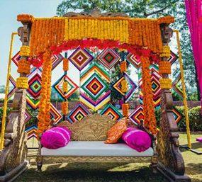 These days, the Mehndi ceremony is a fun-filled day, with song and dance performances while the women relatives vie to get the latest henna designs on their hands and feet. The bride has already had her bridal mehndi (often across her hands and feet) and is ready to party! Held in a colourful mehndi function venue, it requires a specially curated Mehndi songs playlist, choreographed dance performances and in comfortable clothes.